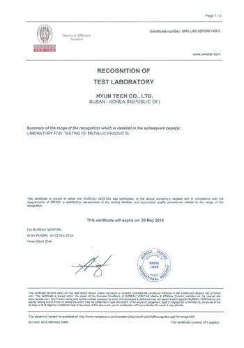(3) In 2010, Bureau Veritas (BV) recognized as independent testing laboratory and first laboratory in Korea.